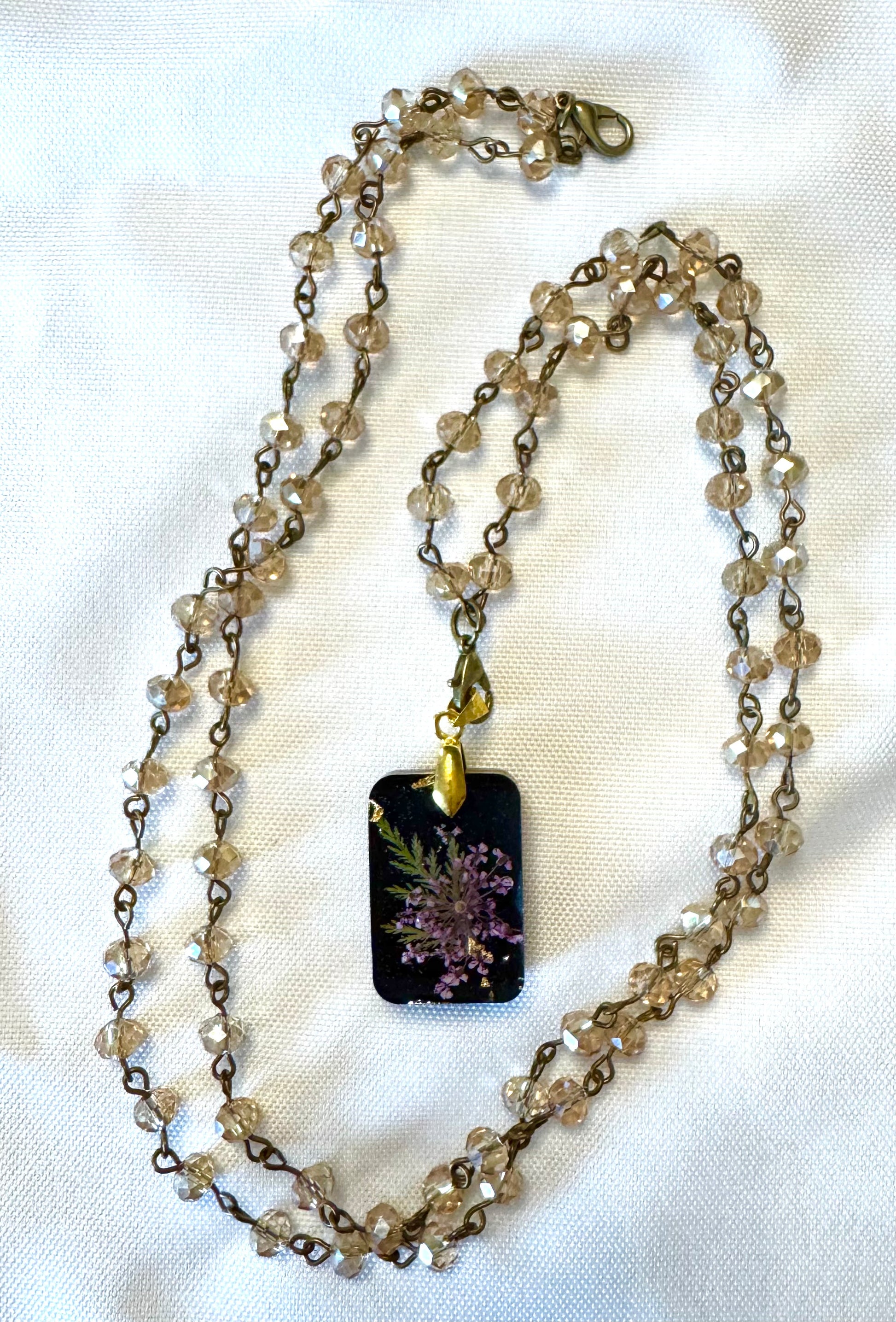 Purple floral pendant with versatile 16” double chain or single 34” chain